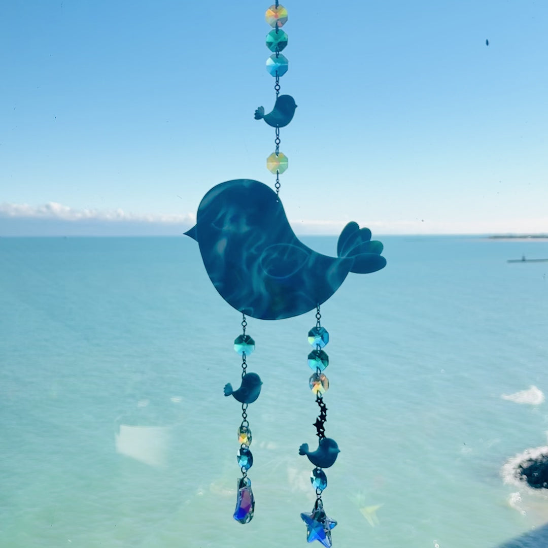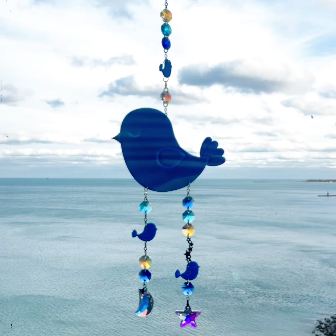 Brighten your space with this adorable handmade bluebird suncatcher. It will create beautiful rainbows and add a touch of whimsy to your home.