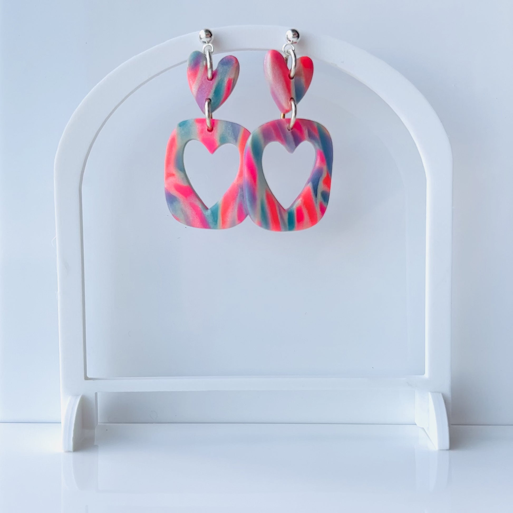 Mila - Colorful Marbled Heart Earrings