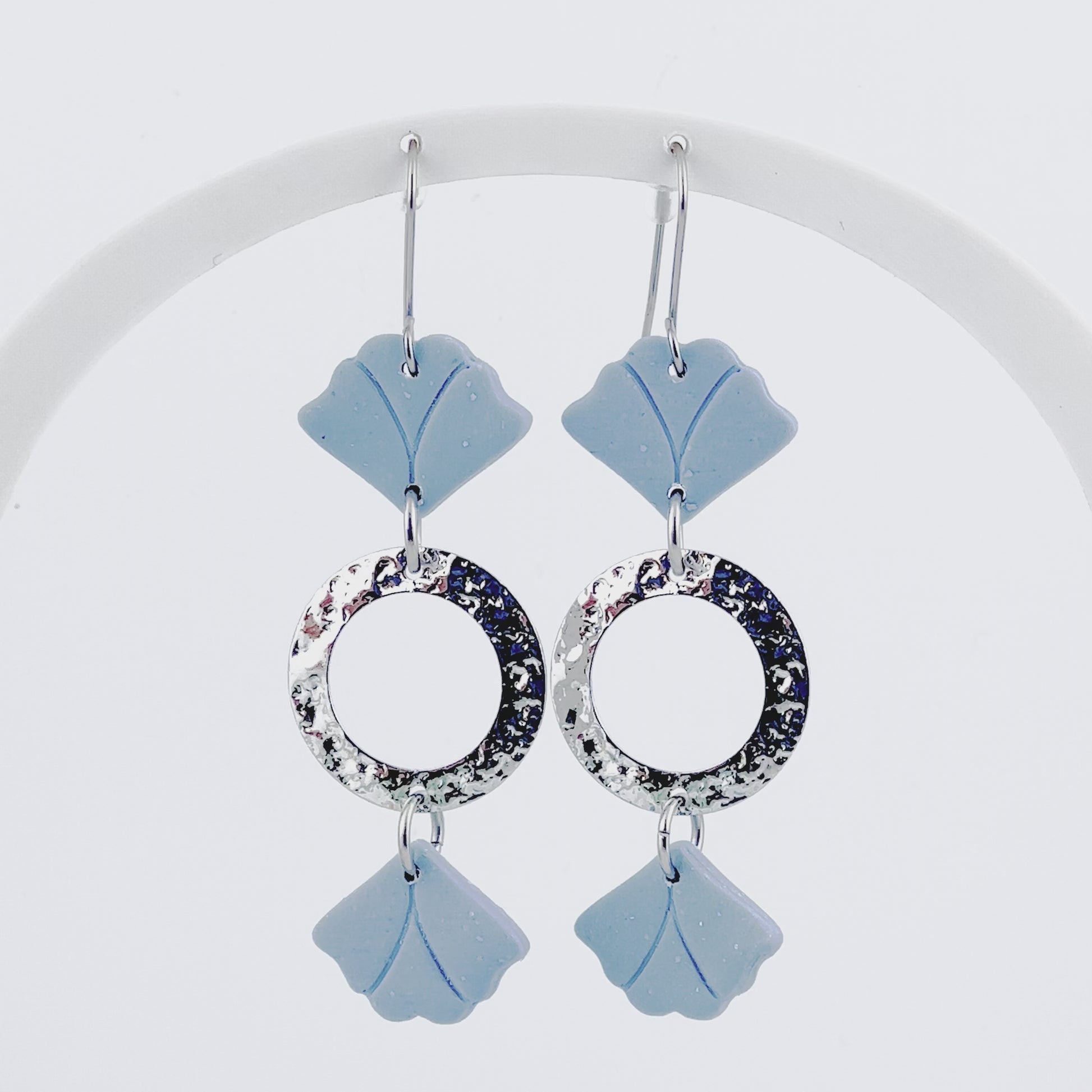 Sema - Blue Floral Leaf Earrings with Hammered Circles
