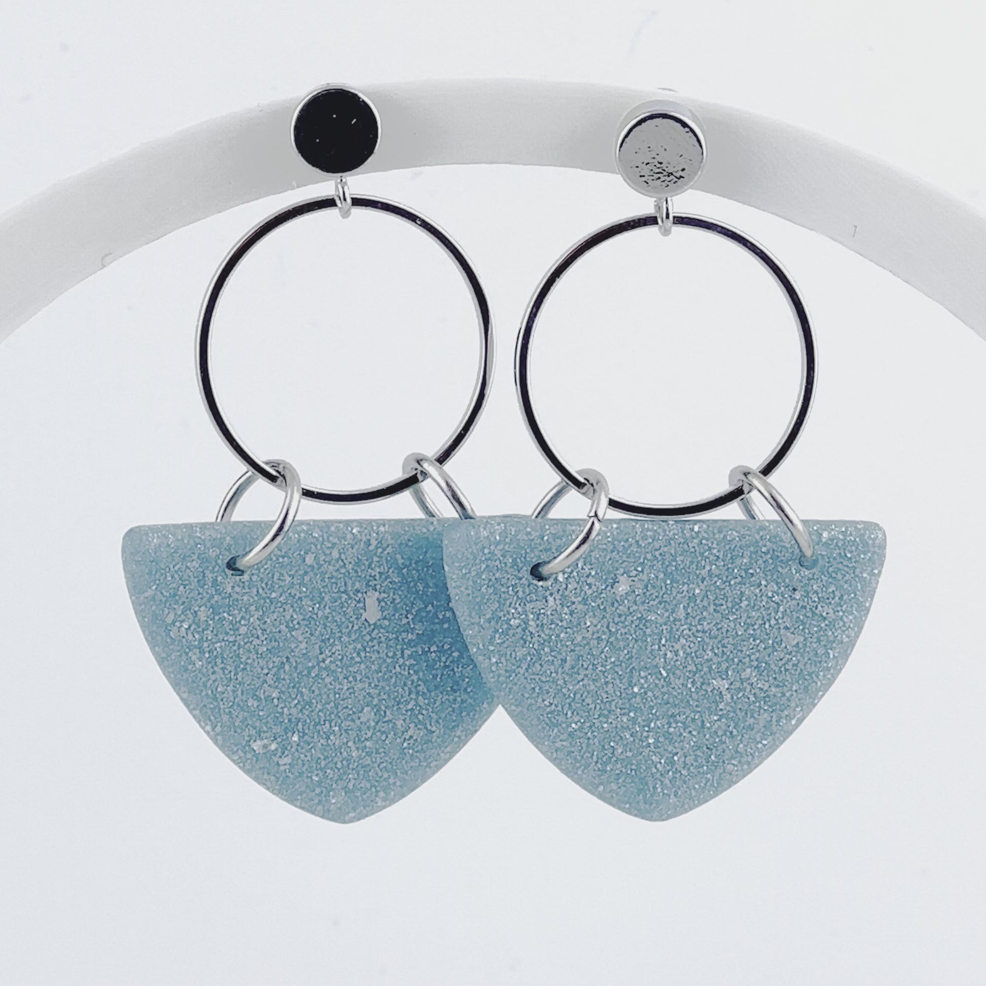 Kalani - Silver Circle & Shimmering Aqua Curved Triangle Earrings