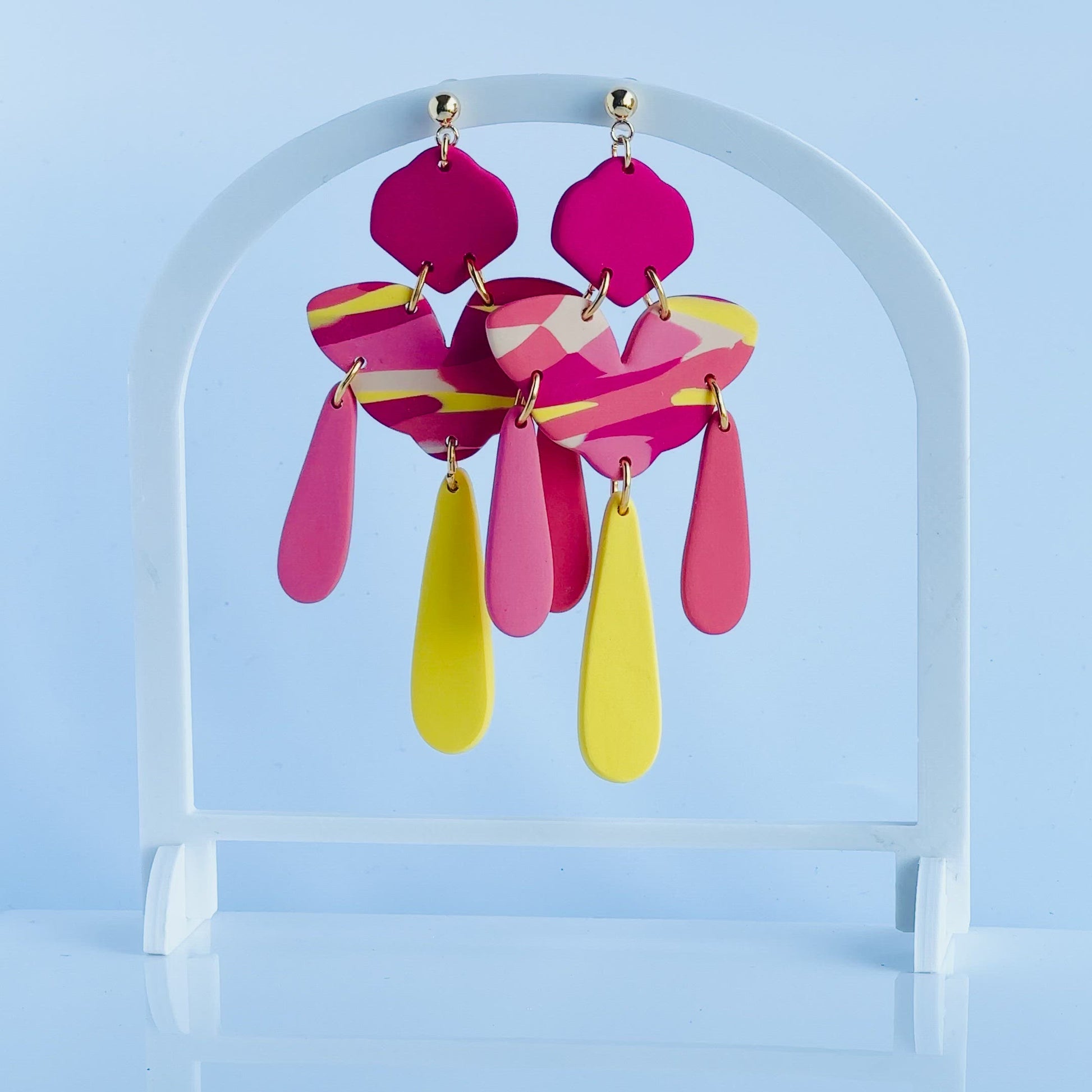 Kira - Magenta, Pink, Tan & Yellow Dangle Earrings