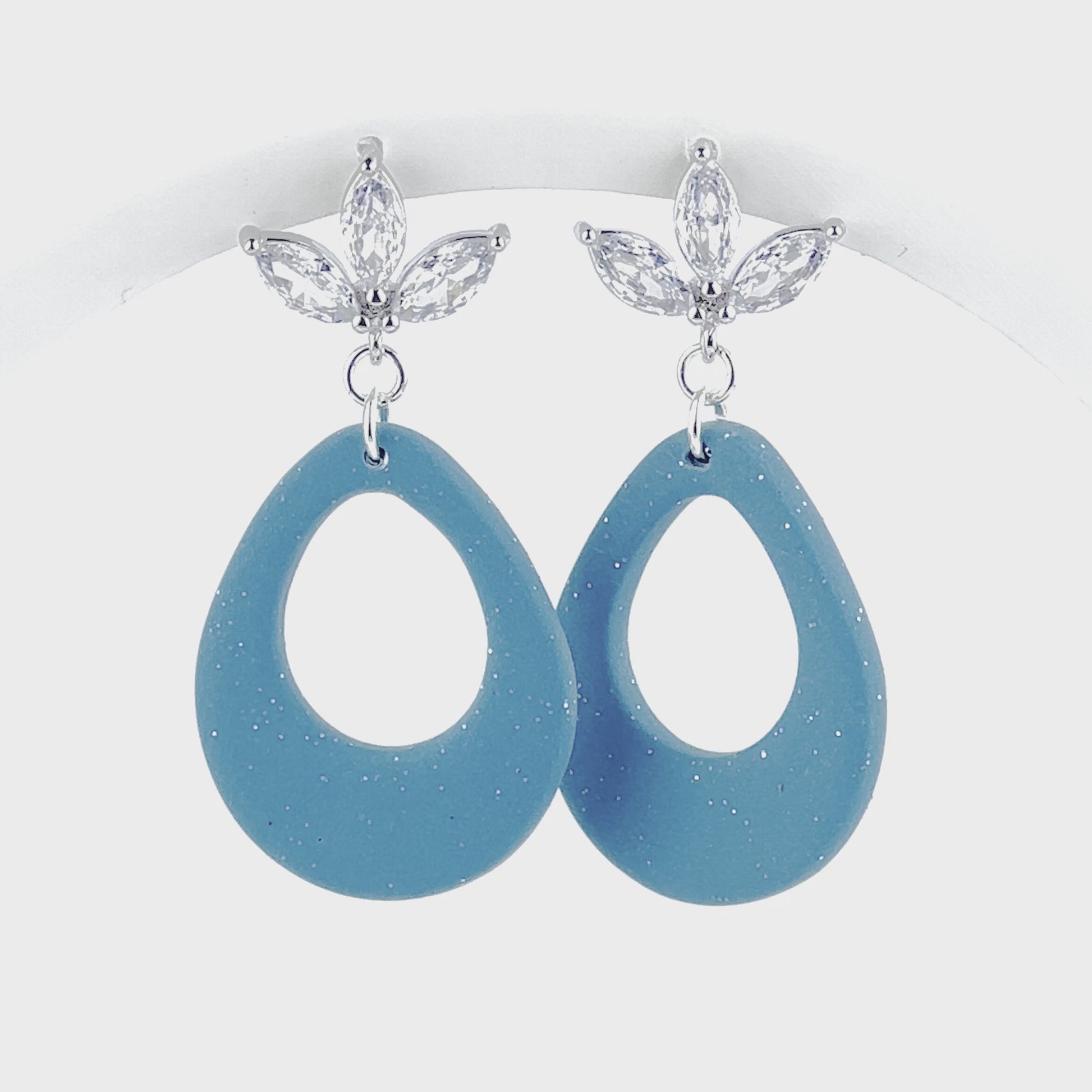 Kisa - Shimmering Turquoise Teardrop with Floral Cubic Zirconia Posts