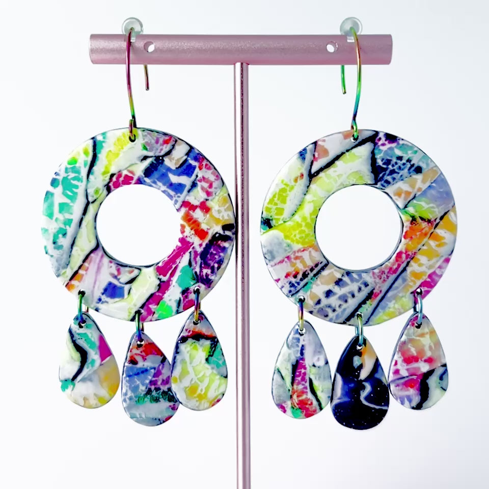 Paint Palette Drops – Handmade Rainbow Circle Teardrop Earrings