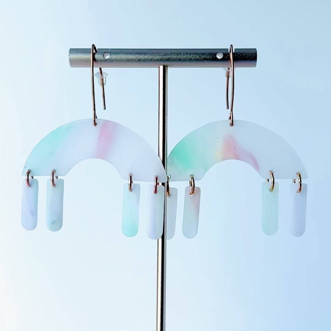Pastel Arch Dangle Earrings – Semi-Transparent Clay & Rose Gold