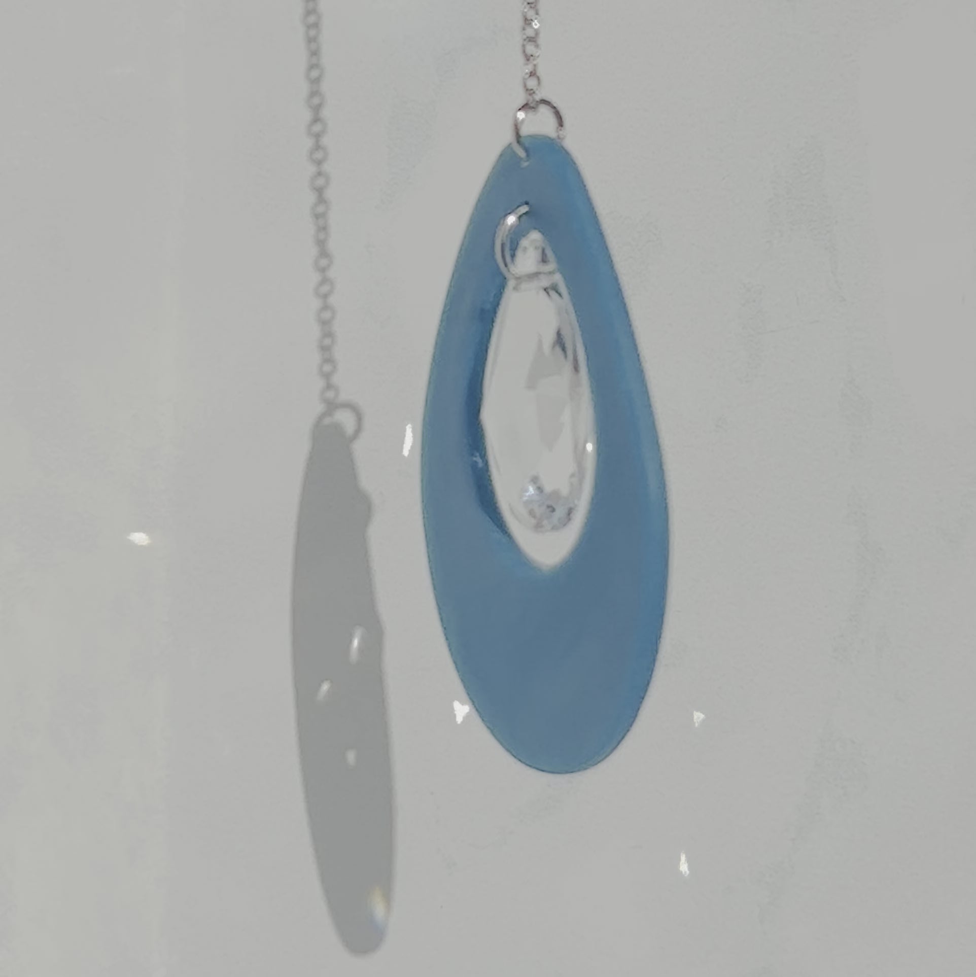 - Total length = 9.5 inches (from top of loop to bottom of crystal)